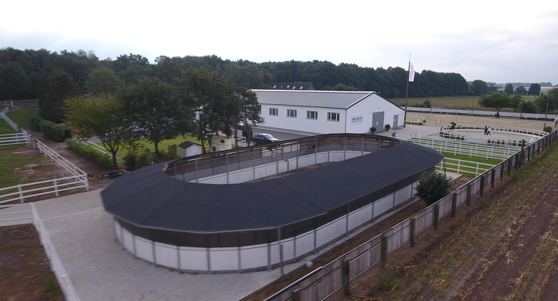 Der Health Care Walker des ADEL RESORT hat eine Lauflänge von 70m pro Runde, davon 40m in der Geraden. Dazu ist der Laufboden mit Gummimatten ausgelegt. Diese Ausstattung verhindert Mirko-Läsionen und Mirko-Traumen. So können Pferde mit Verletzungen überhaupt erst eine Führanlage nutzen.
